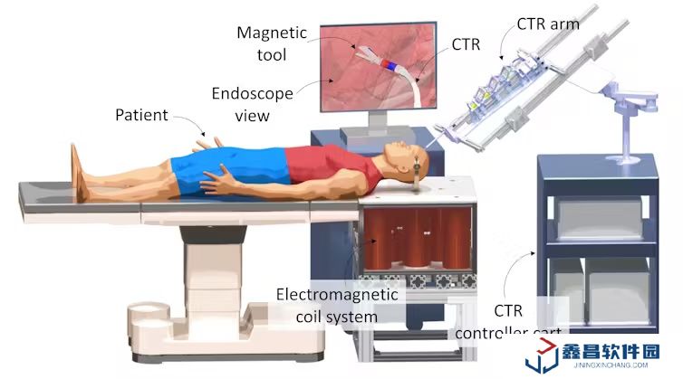 在手術過程中,患者頭部將置于嵌入線圈的手術臺上,微型工具通過一個小切口插入腦部。通過調節線圈中的電流,醫生可以精準地操控磁場,使工具實現抓取、拉動或切割組織的動作。