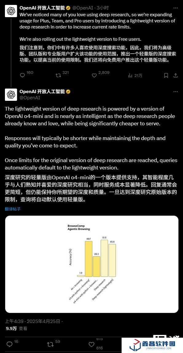 - OpenAI 推出輕量級 ChatGPT 深度研究工具,免費用戶也能用