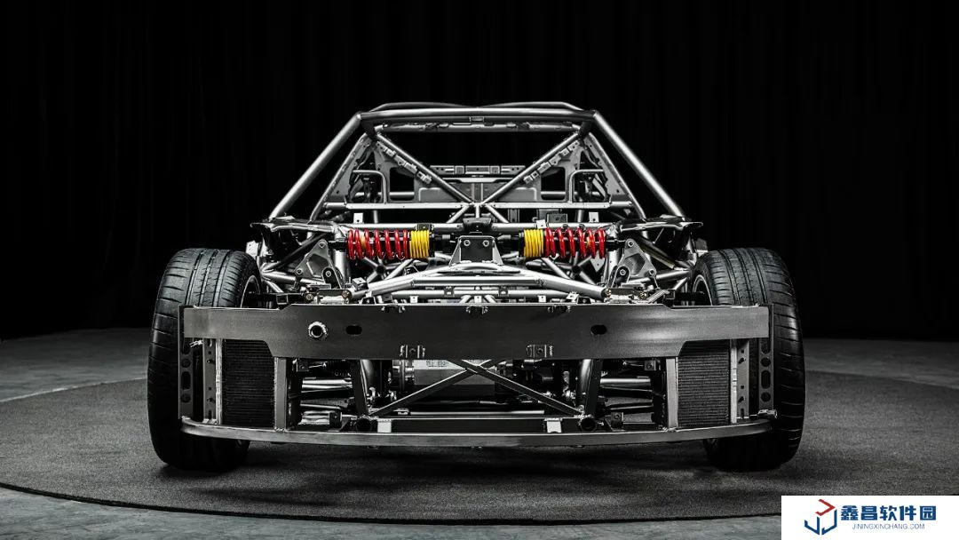 這款車型屬于工匠派團隊聯合江鈴集團新能源汽車公司打造的純電動雙門跑車,采用推桿式懸架(F1 同款技術)和管陣式車架,車身整備質量僅 1365kg,質心高度 380mm,采用后中置電池,搭載雙電機四驅系統,綜合功率 435 馬力,峰值扭矩 560N?m,零百加速 2.9 秒。