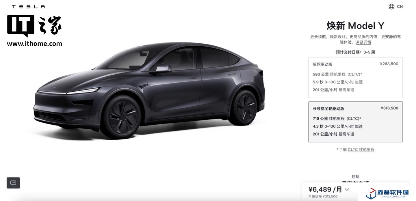 《特斯拉煥新 Model Y 長續航版漲價 1 萬元:現價 31.35 萬元,同時為后輪驅動版推出 3 年 0 息購車政策》