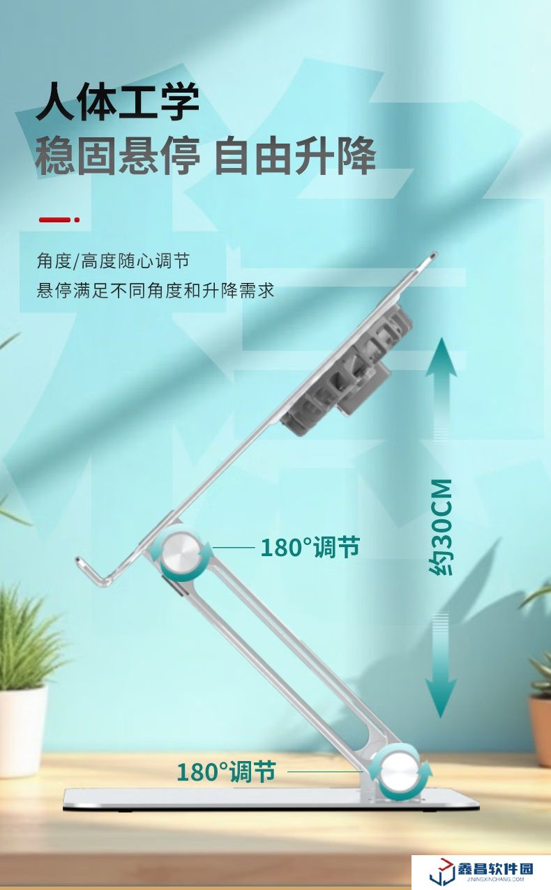 這款散熱支架采用人體工學設計,支持懸停,高度和角度都可以自行調節,可滿足不同角度和升降需求。本站附示意圖: