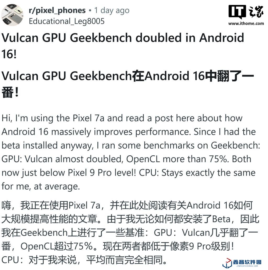 這一現象不僅限于測試版,安卓 15 穩定版用戶也報告了類似改進,盡管具體原因尚未明確,但很可能與近期 GPU 驅動更新有關。
