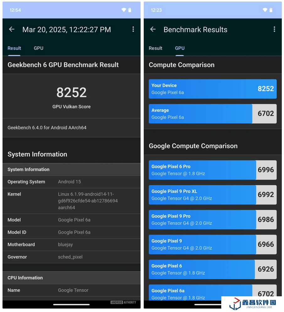 以 Pixel 6a 為例,即便運行安卓 15 穩定版,其 Geekbench 6 GPU 分數也提升了近 23%,總分達到 8252 分,甚至超過了 Pixel 9 Pro 的表現。