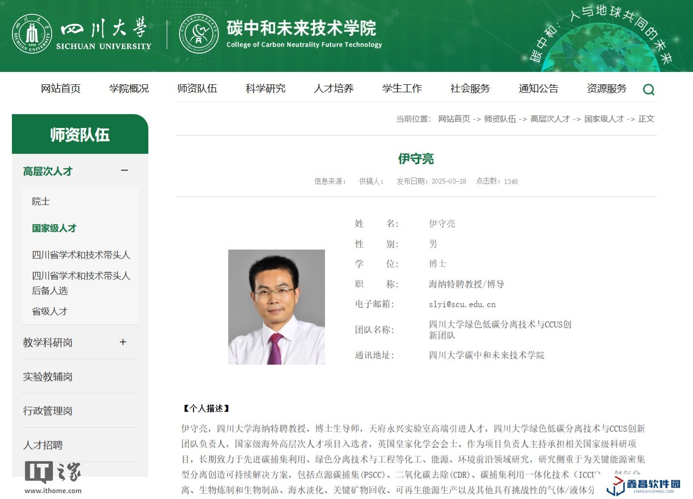 除此之外,四川大學碳中和未來技術學院網頁顯示,曾在美國能源部頂尖實驗室供職的資深科學家伊守亮也已離開美國回國,并于今年 3 月開始擔任四川大學海納特聘教授、博士生導師,領導一個綠色碳分離技術創新團隊。