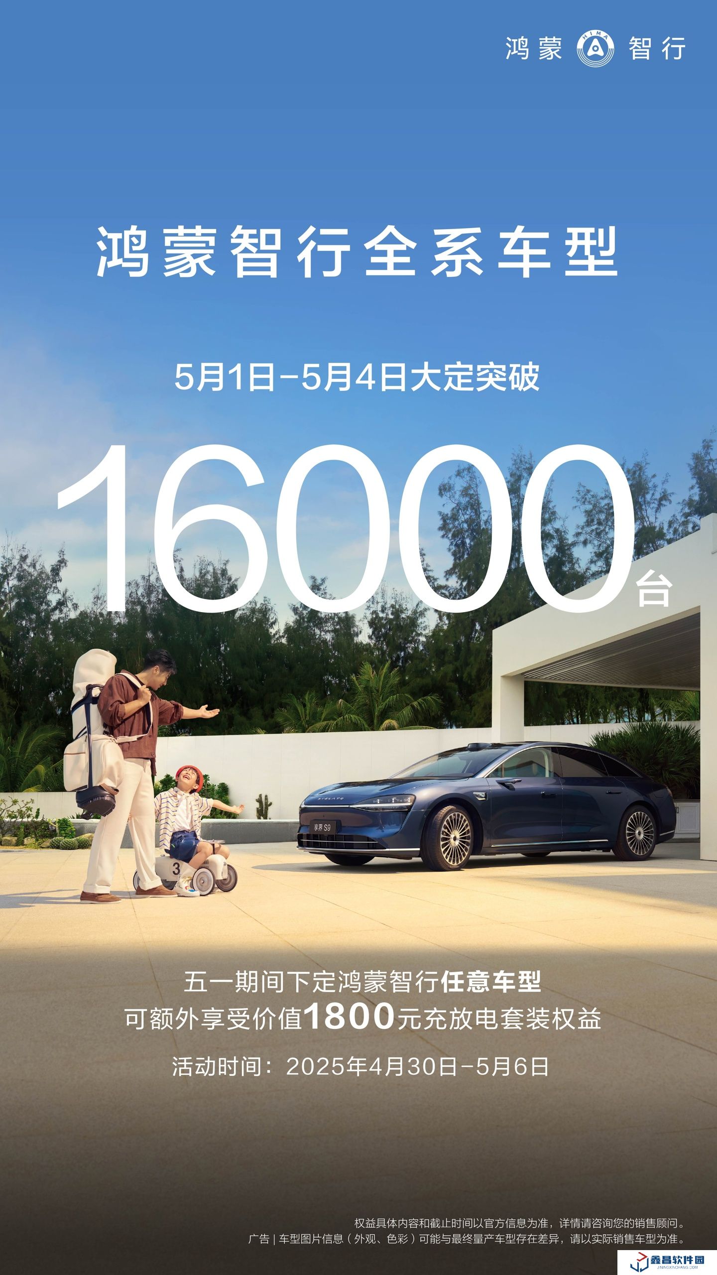 本站 5 月 5 日消息,鴻蒙智行昨日晚曬出的“戰報”顯示,全系車型 5 月 1 日-4 日大定突破 16000 臺。