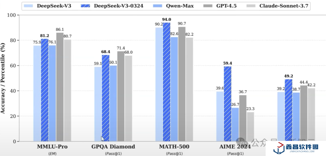 看看這些真實數字,假設沒有任何答案進入 Llama 4 的訓練數據,這個模型在 GPQA Diamond 上的性能(谷歌驗證的極其嚴格的 STEM 基準測試)實際上是比 DeepSeek V3 更好的。