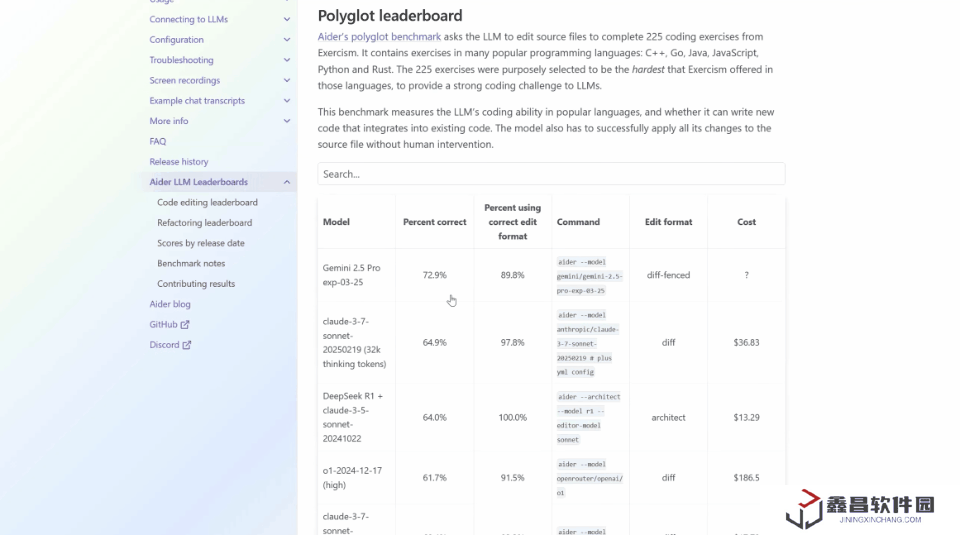 但與許多基準不同,它不僅僅關注 Python,而是一系列編程語言,現在依然是 Gemini 2.5 Pro 名列前茅。