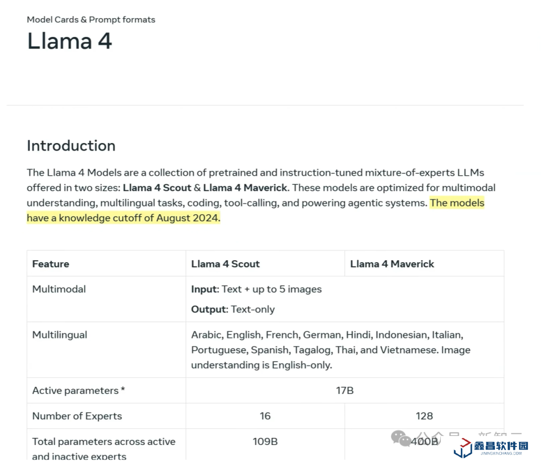 此外,Llama 4 的最新訓練數據截止時間是 2024 年 8 月,這就很奇怪。