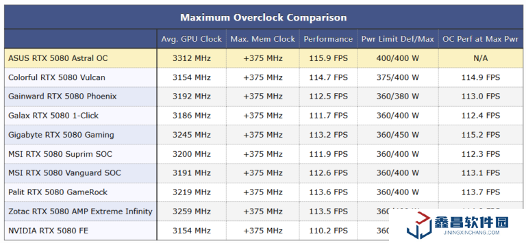 雖然華碩沒有公布原先的 TGP 上限,但根據 TechPowerUP 的測試數據來看,這款顯卡的默認功率設置為 400W,而大多數 RTX 5080 默認功率限制通常為 360W。