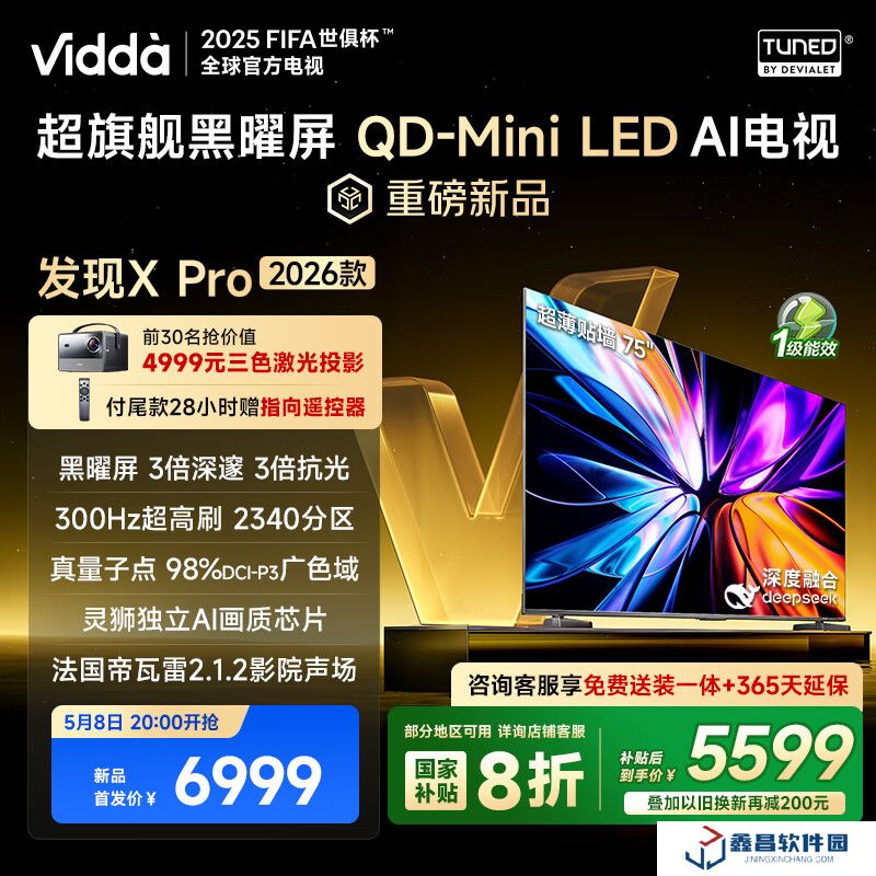 本站 4 月 12 日消息,Vidda 發現 X Pro 2026 款“超旗艦黑曜屏 QD-Mini LED AI 電視”現已上架京東并開啟預售,將于 5 月 8 日正式開售,本站匯總如下: