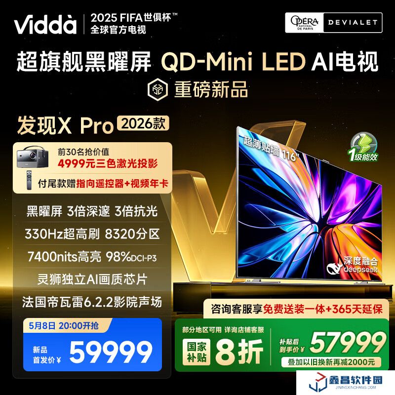 - Vidda 發現 X Pro 2026 款 QD-Mini LED 電視發布:峰值亮度 7400nits,116 英寸 59999 元
