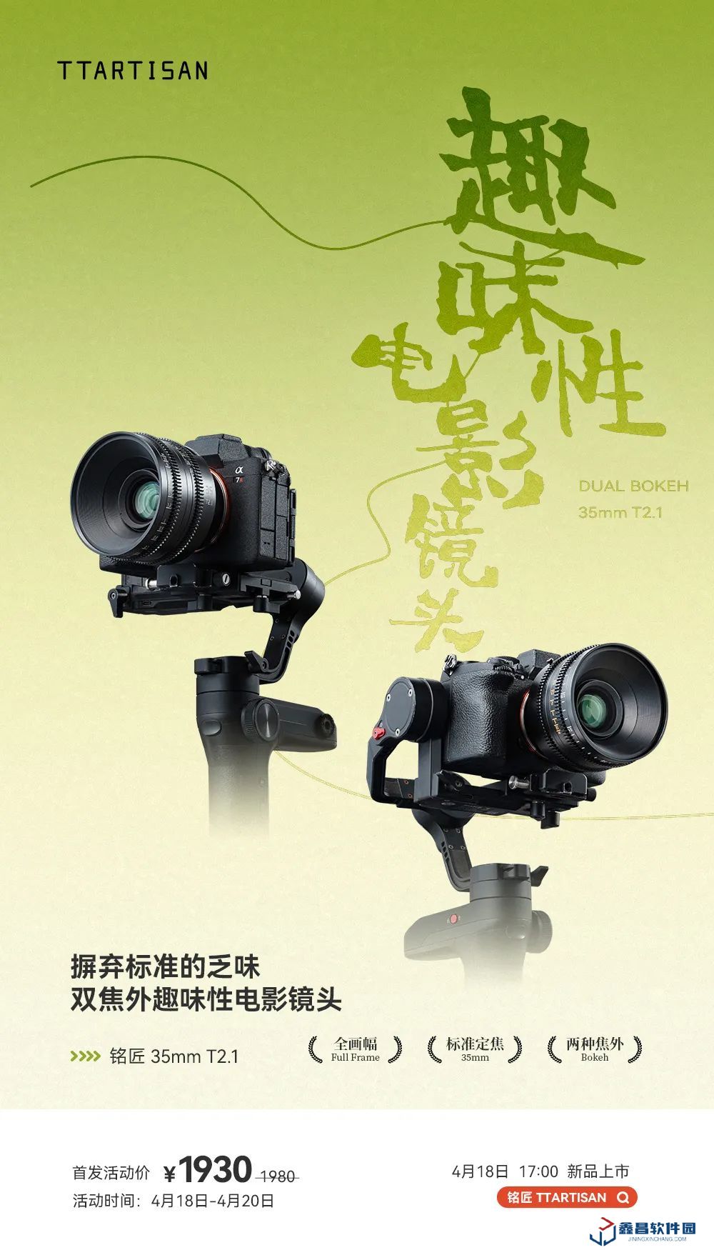 本站 4 月 19 日消息,銘匠光學昨天推出了一款 35mm T2.1 趣味性電影鏡頭新品,首發價 1930 元,提供 E、X、Z、RF、L 卡口版本。