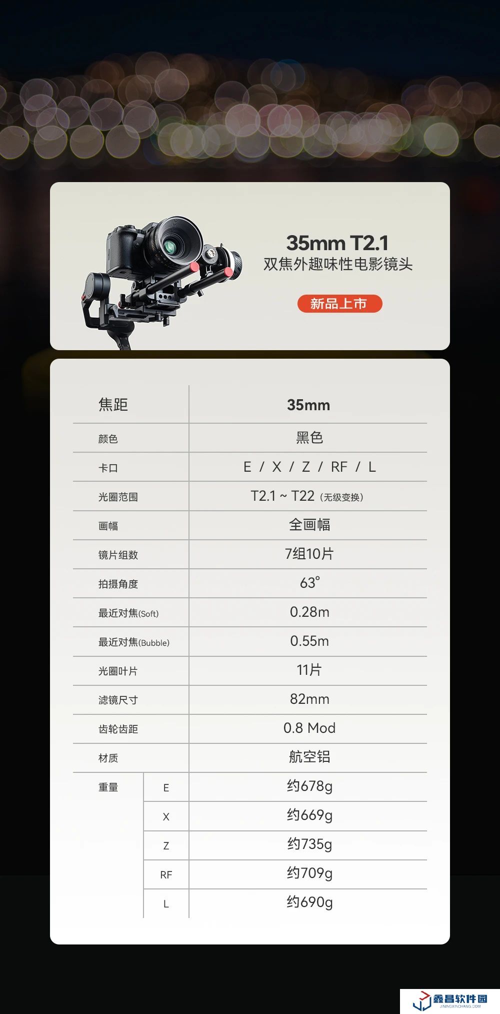 作為趣味性電影鏡頭,其核心亮點在于支持 Bubble(泡泡焦)與 Soft(柔焦)雙模式切換,配合 T2.1-T22 無級光圈調節系統,可實現焦外效果的實時調控。
