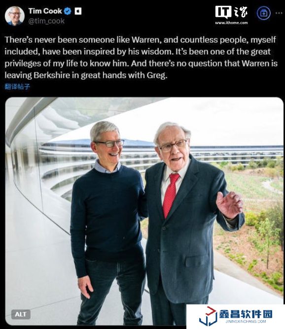 - 蘋果 CEO 庫克發文致敬巴菲特:認識他是我人生中莫大的榮幸之一