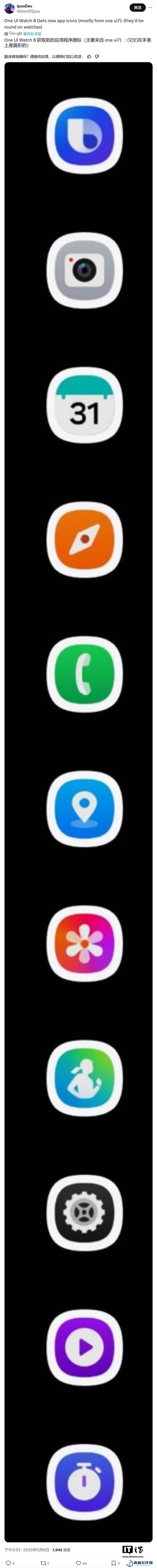 此外消息源還透露三星將更新 One UI Watch 應(yīng)用圖標(biāo),與 One UI 7 的設(shè)計(jì)風(fēng)格相似。由于三星直接跳到 One UI 8 Watch,沿用熟悉的圖標(biāo)設(shè)計(jì)也在意料之中。