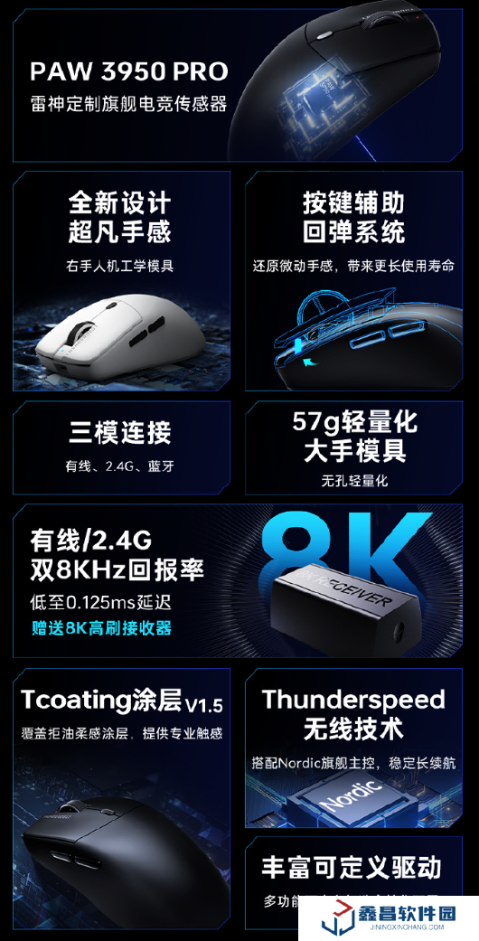 299 元雷神 ML6 PRO 8K 競(jìng)技版鼠標(biāo)開(kāi)售:PAW3950 PRO 傳感器、雙 8KHz 回報(bào)率