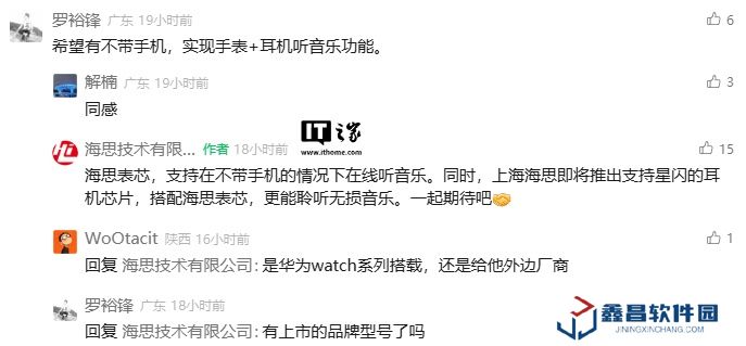 本站注意到,上海海思在該文章的評論區中還回復了關于星閃耳機的問題:“海思表芯,支持在不帶手機的情況下在線聽音樂。同時,上海海思即將推出支持星閃的耳機芯片,搭配海思表芯,更能聆聽無損音樂。”