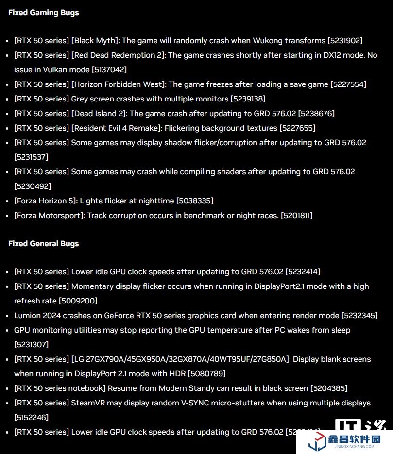本站 5 月 2 日消息,英偉達現已發布 Game Ready 576.28 驅動,根據更新說明,新版驅動修復了許多困擾 RTX 50 系列顯卡用戶的 Bug,例如在《黑神話:悟空》中一變身就崩潰的問題。