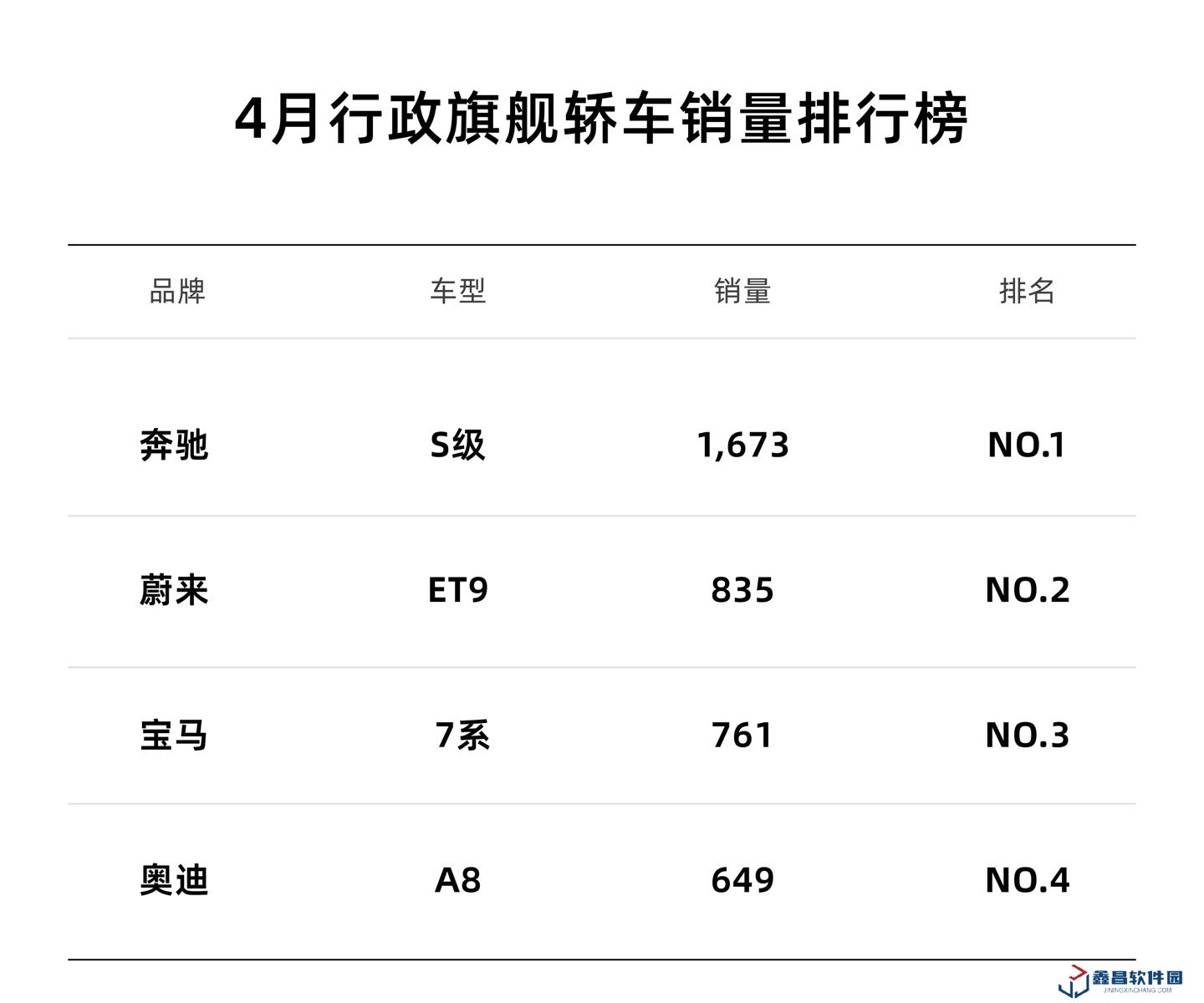 博主還表示,蔚來 ET9 憑借全棧自主研發技術和創新科技,上市以來就收到了廣泛關注和市場認可,其核心技術硬實力已實現對傳統豪華品牌的全面超越。目前 BBA 的行政旗艦轎車,成交價已經殺到 60 萬,溢價正在快速被擠干。4 月行政旗艦轎車銷量排行榜如下: