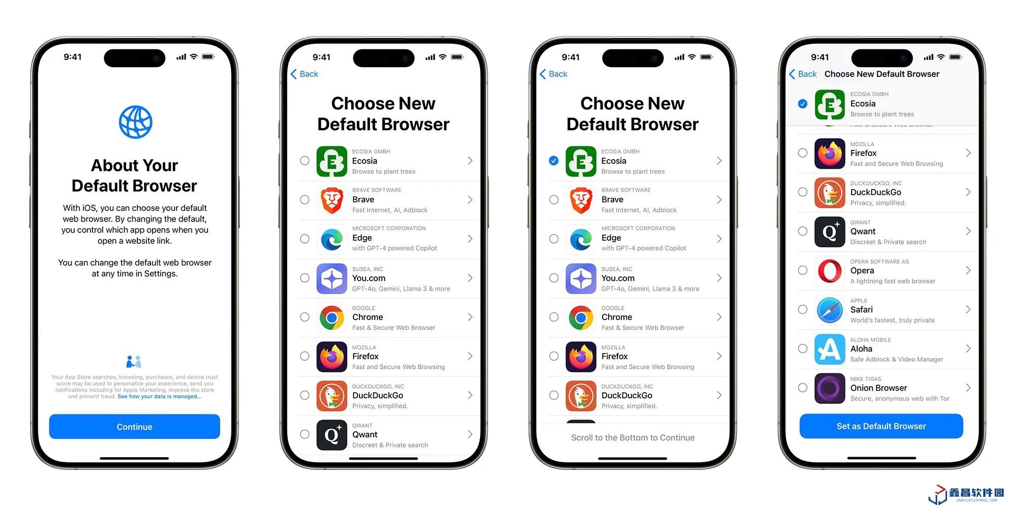 本站援引博文介紹,蘋果為迎合《數(shù)字市場法》,首次支持 iOS 用戶側(cè)載應(yīng)用并自主選擇默認(rèn)瀏覽器,更破例開放歐盟區(qū)第三方瀏覽器使用非 WebKit 引擎(其他地區(qū)仍強(qiáng)制使用 Safari 內(nèi)核)。