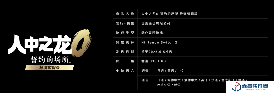 本站 4 月 21 日消息,《人中之龍 0:導(dǎo)演剪輯版》官網(wǎng)顯示,該作將于 6 月 5 日正式發(fā)售,新增中文配音和原作未收錄場景,登陸 Switch 2 平臺,售價338 港幣(本站注:現(xiàn)匯率約合 318 元人民幣)。