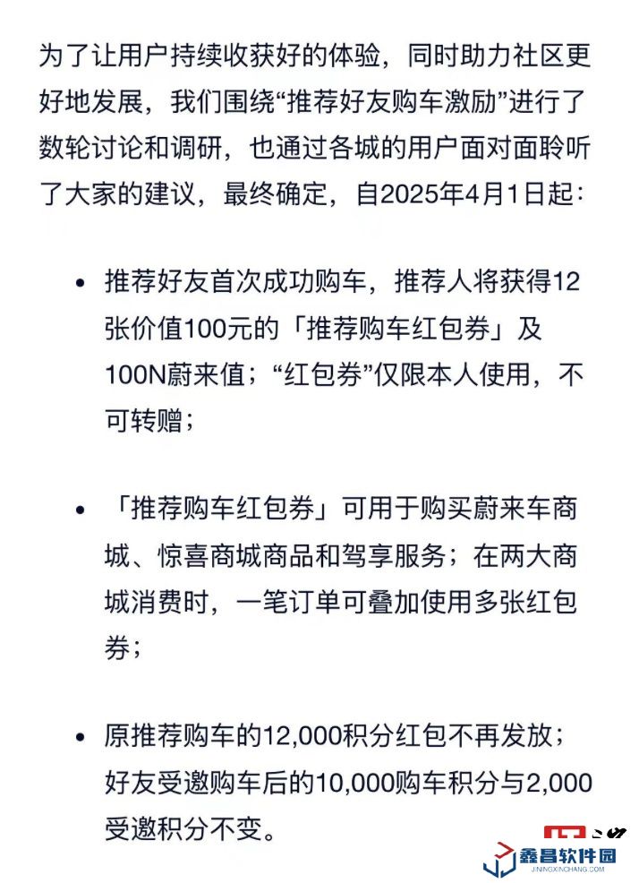 蔚來修改“推薦好友購車激勵”:推薦人 12000 積分改為 12 張 100 元紅包券 + 100N 蔚來值