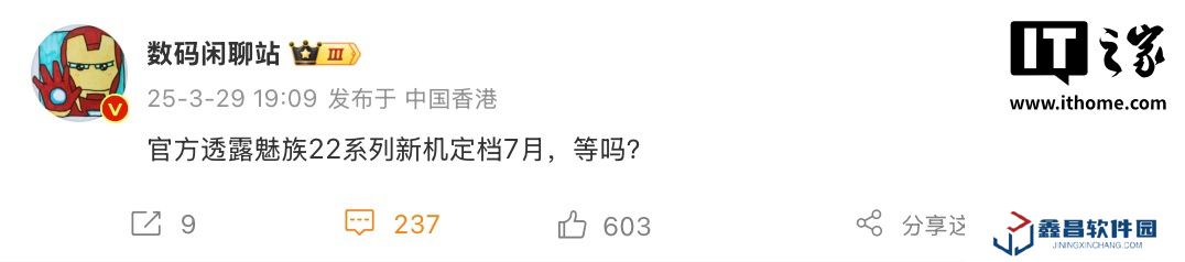 本站 3 月 29 日消息,博主@數碼閑聊站 發文,稱“官方透露魅族 22 系列新機定檔 7 月”,不過其暫未公布系列手機具體規格信息。