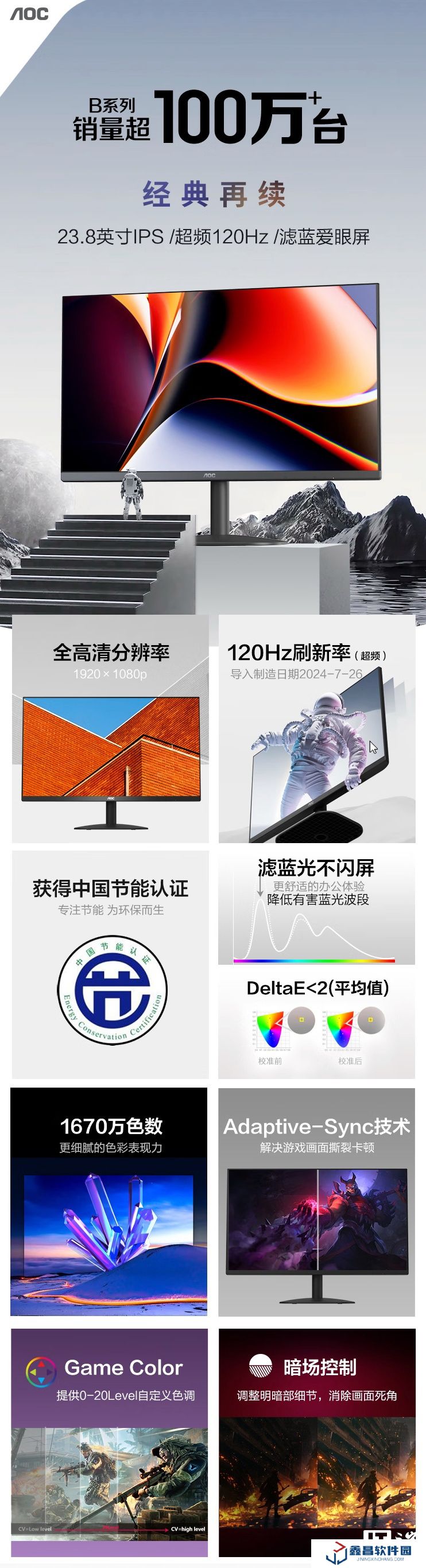 AOC 推出新款“24B35H”23.8 英寸顯示器:1080P 120Hz 超頻,國補后 399 元