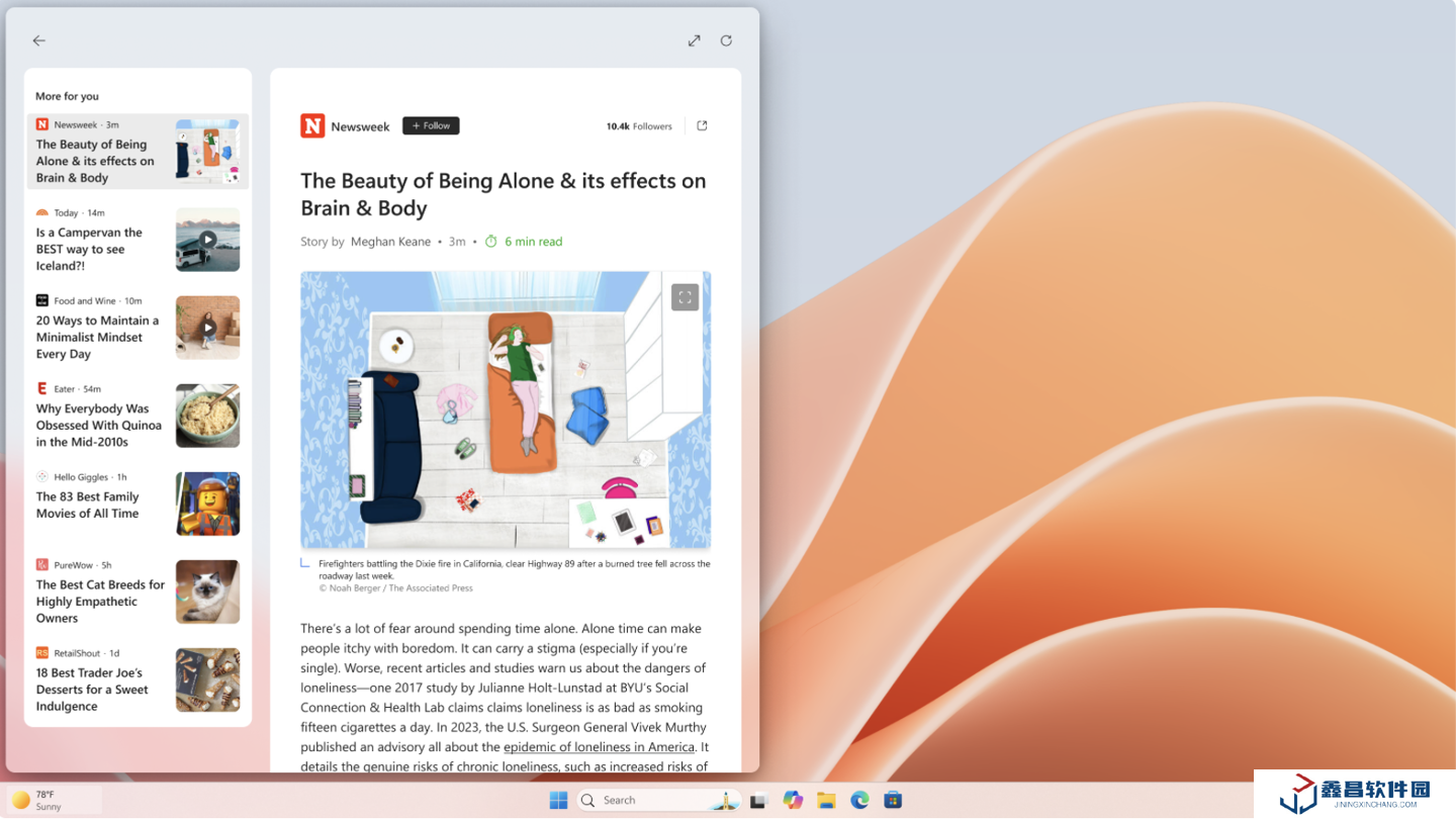 微軟更新了小組件,支持閱讀 MSN新聞動態中的完整文章