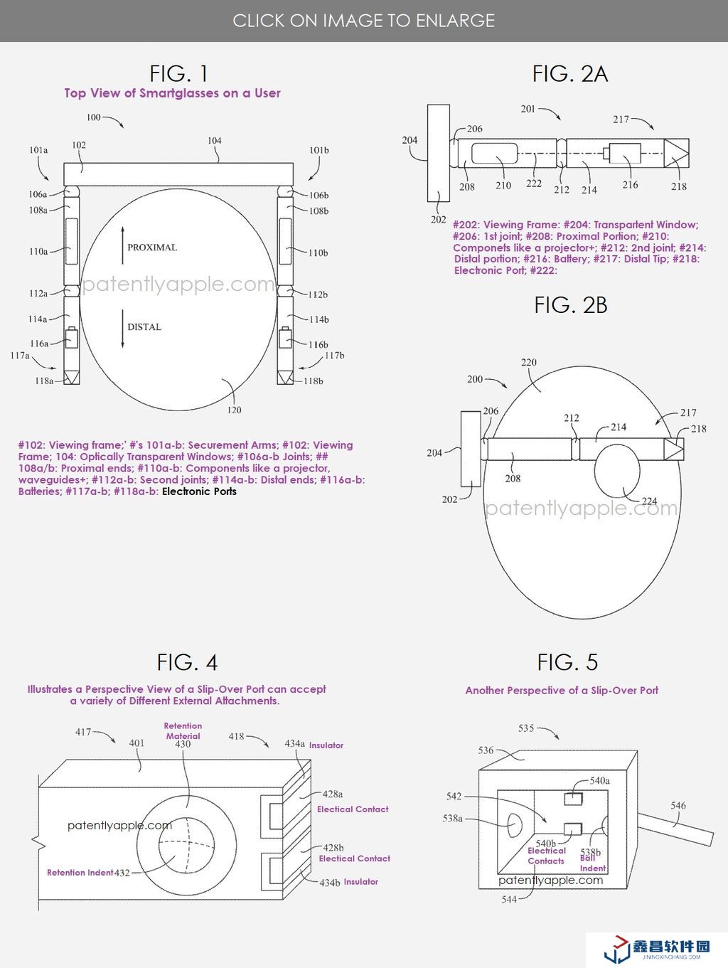 本站援引博文介紹,評估蘋果專利描述的側臂(securement arms)末端(耳后)設置電源或數據端口,支持充電及擴展功能。