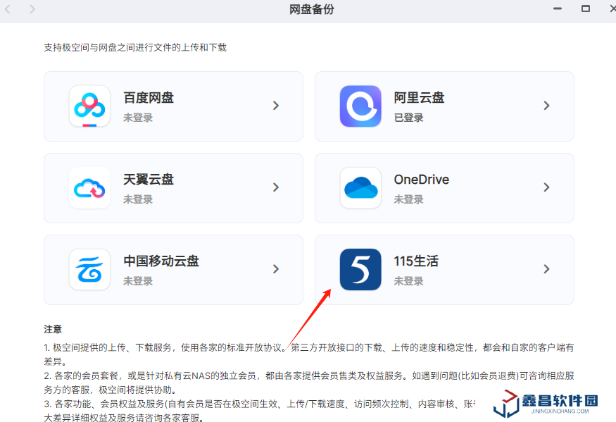 極空間和 115 網盤官方合作,雙向打通,在網盤備份中新增加的“115 網盤”功能,支持文件的上傳、下載、以及設定自動備份任務,下載 115 網盤的內容。