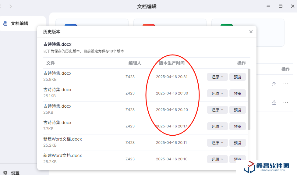 文檔編輯功能還支持歷史版本保留功能,用戶可以自定義保留的版本數量。