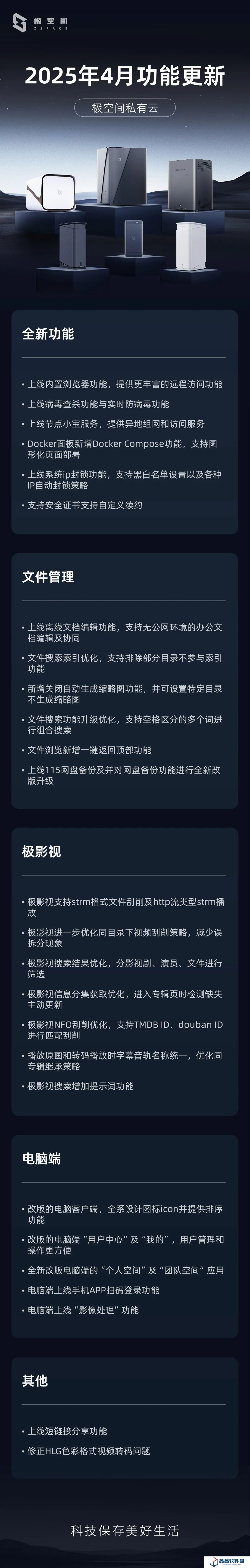 本站 4 月 18 日消息,極空間私有云今日發布了 2025 年 4 月功能升級內容,帶來全新 UI 、支持“Strm”、Docker Compose 等。