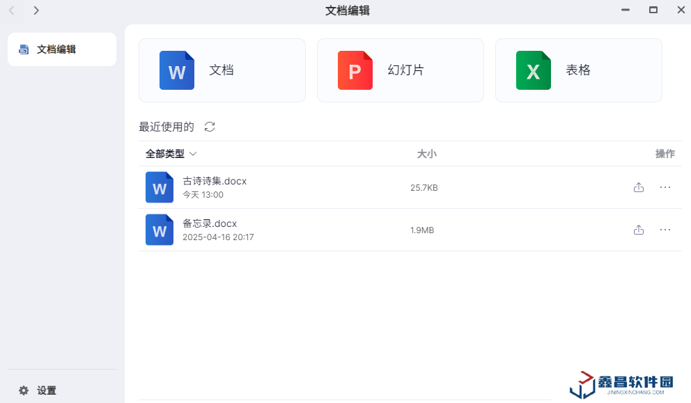 文檔編輯功能支持 word、ppt、excel 文件的新建、編輯、瀏覽,以及 pdf 文檔的瀏覽、評論標記。