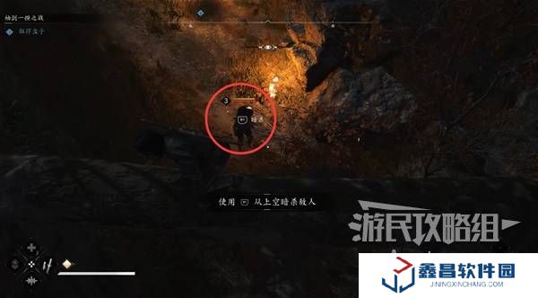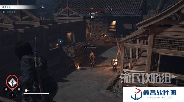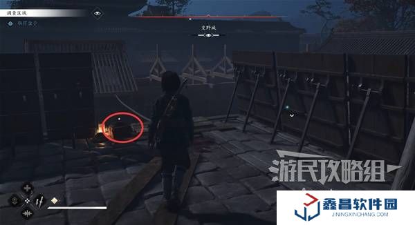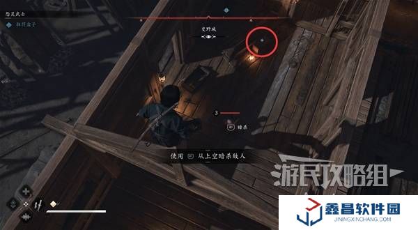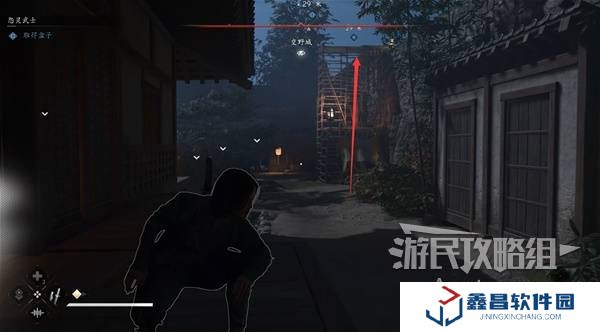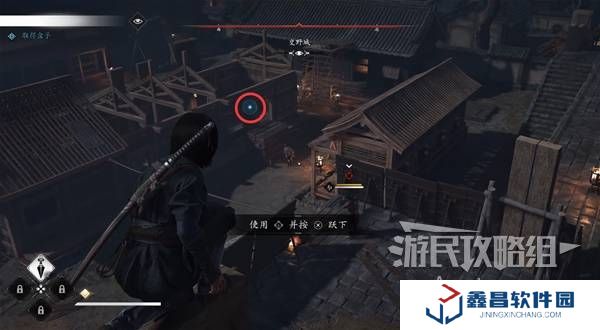 終于找到搶你盒子的井戶義廣,使用鉤繩蕩過去然后從空中暗殺,然后逃出城觸發(fā)劇情。
