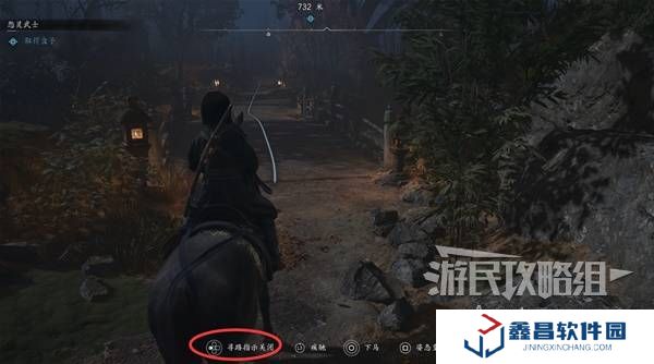 離開富子的宅邸,使用尋路指引,白線會(huì)帶你抵達(dá)當(dāng)前目標(biāo),或當(dāng)前你自己的標(biāo)記地點(diǎn)。