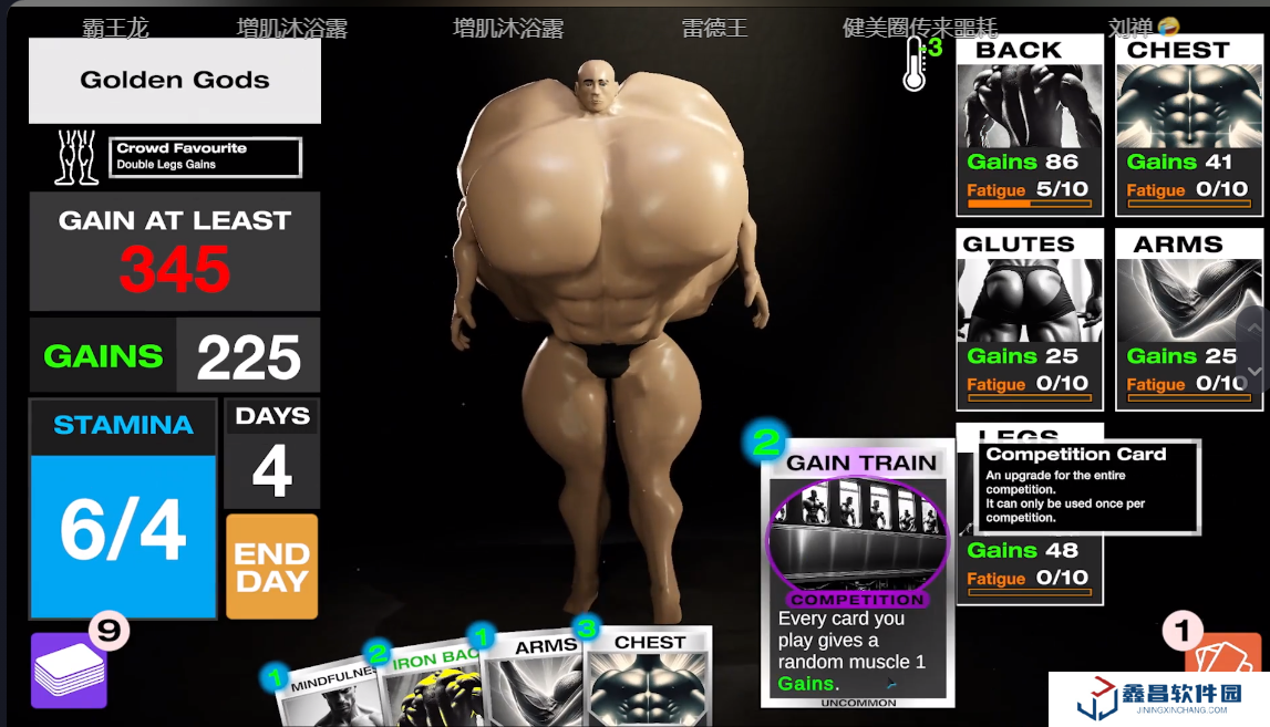在游戲中,玩家扮演一名健美選手,通過卡牌策略提升肌肉屬性。每場比賽前,你需要用“深蹲卡”強化腿部、“臥推卡”練厚胸肌,甚至可能觸發“蛋**暴擊”等隨機事件。但稍有不慎,也可能因“過度訓練”導致角色受傷,直接上演“健美圈噩耗”名場面。